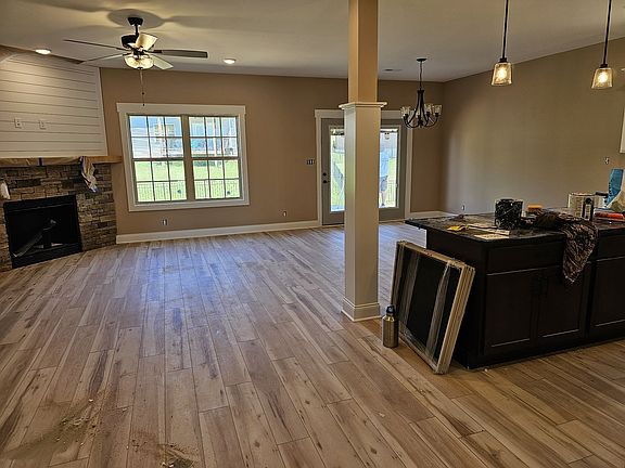 BRAND NEW HOME! AWESOME NEW ONE STORY! EXIT 11! *3,2,2 Open concept floor plan with amazing layout & low barrier entrance *Kitchen has eat-at island, stainless steel farm sink, stainless appliances, pendant lighting, under cabinet lights, granite countertops *Great Room has a beautiful fireplace with stone surround and shiplap accents *Primary Suite overlooks back yard and has sliding barn door into Bathroom, large walk-in closet, and walk-in tile shower *Decorative colors with a mix of warm and bold tones *Covered porch with fan and LED lighting *Craftsman Trim Package *EV outlet in garage *Easily commute to Nashville or Ft Campbell from this location *County Taxes Only! *Quality Built by Woodson Construction since 1986