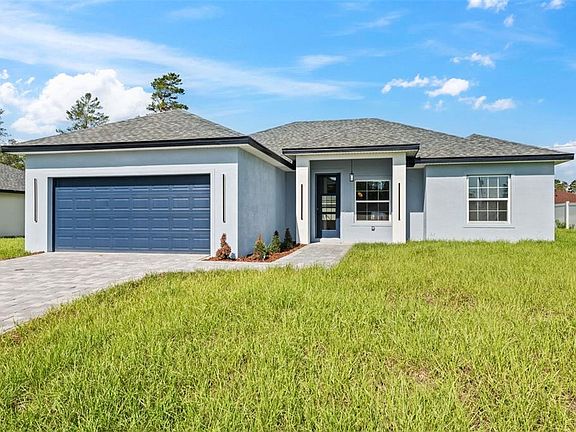 Welcome to this stunning modern 4-bedroom, 2-bath home located in the peaceful and desirable Marion Oaks community of Ocala, FL. This single-story residence combines contemporary design with everyday comfort, featuring an open-concept floor plan, high ceilings, and abundant natural light throughout. The modern kitchen is equipped with granite countertops, stainless steel appliances, and a spacious island overlooking the living and dining areas perfect for entertaining or family gatherings. The primary suite offers a walk-in closet and an elegant en-suite bath with dual vanities and a tiled walk-in shower. Enjoy relaxing on the covered back patio or take advantage of the two-car garage and low-maintenance landscaping. Conveniently located near shopping, dining, schools, and major highways, this home offers both style and convenience in one of Ocala's most sought-after neighborhoods. Don't miss your opportunity to make this move-in ready home yours!