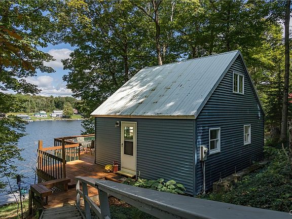 RARE OPPORTUNITY to own your own lakefront cottage on the private Pleasant Lake! Step inside and you’ll find a cozy main floor bedroom, and upstairs bunk room offering a second sleeping area that comfortably fits up to five more beds—perfect for family gatherings or hosting friends. The open layout is perfect for entertaining. Enjoy the comforts of home with the newly updated bathroom. Outside, enjoy breathtaking views of your private lake from the wonderful front deck, the perfect spot to sip morning coffee or unwind at sunset. The 78 feet of waterfront is complete with retention wall and 30 ft dock with a ladder making this property the perfect place for sunbathing, boating, and fishing. Electric baseboard heat allows for an extended season so the fun doesn't need to end with summer. Opportunities like this don’t come along often—a private lake getaway where memories are made year after year. Many major improvements have been done, so you may relax.