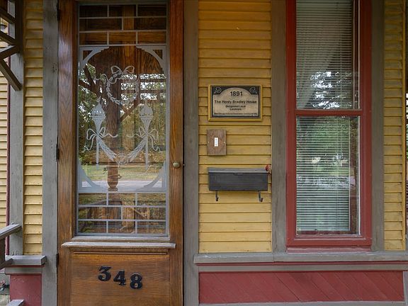One of West Chicago's most graceful and historic Queen Anne homes set on a DOUBLE LOT, welcome to 348 Arbor Avenue! The plaque near the front door notes this as "The Henry Bradley House" and a designated local landmark. Enter from the covered front porch into a gracefulness that is hard to find. ALL of the main floor woodwork and on the winding staircase has been hand scraped and refinished back to its original glory. Hardwood floors throughout most rooms, 10' ceilings on the main level, extra-wide base trim, ceiling detail and rich crown moldings grace most rooms. The living room offers a fireplace, bay window and generous seating areas. The dining room has plenty of room to spread out. The versatile 1st floor den/library (or 4th BR) has a walk-in closet and built-in bookcases. The kitchen was updated not too many years ago and features white cabinetry, beautiful bay window with window seat, Corian counters, special lighting, Dacor and Kitchen Aid Appliances. There is access to the back porch, and out to the yard and the 2-car garage. There is also access in the kitchen to a back staircase and a staircase leading down to the basement. An updated 1/2 bath completes the main level. The 2nd floor offers 3 spacious bedrooms, a full updated bath, a sleeping porch and a nursery/craft room. There is also a finished walk-up attic with endless possibilities. The basement offers great storage, the laundry area, and outside entry and updated 200 Amp electric service and a newer Hi-Efficiency heating/cooling system. The double-wide lot (102' wide & 132' deep) has many gardens, plenty of play space and privacy. The 2-car garage is accessible off of the alley in the rear. Easy walk to downtown West Chicago and even to the commuter train station. Plenty of shopping nearby as well and close to the schools. This home has been lovingly cared for AND it shows. Originally built by the West Chicago Door and Sash Company, it has been owned (and improved-note NEW roof on home & garage in '24) by this family for over 25 years!