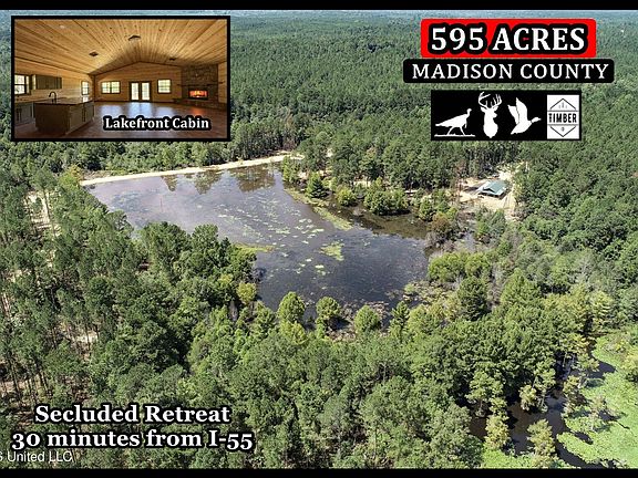 Welcome to the Madison 595. A gorgeous work in progress and a deer and turkey paradise. This contiguous 595 acres in Madison County is an incredible place with a brand new secluded lakefront cabin just in time for hunting season. Only thirty minutes from I-55's Nissan Parkway in Canton, you'll be ready to relax and enjoy as soon as you hit the gravel on Beaverdam Road.