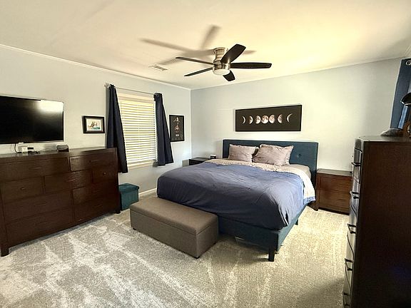 This 3 bedroom 2 bathroom home is very comfortable and in a great neighborhood. The primary suite has a king bed and plenty of room for clothes storage, the remodeled bathroom has a jacuzzi tub and two sinks.