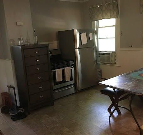 2nd floor unit with 2 bedrooms 1 bath. Spacious eat-in kitchen with stainless steel appliances. Bedrooms are carpeted and living room has hardwood. Walk-up attic for additional storage. Ample off street parking. Property set back from street. Quiet, wooded yard.