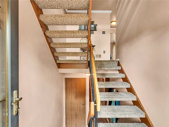 Second full bath was enlarged and remodeled. Updated carpeting on steps and bedrooms. Tandem garage for a smaller car or additional storage. Plumbing lines replaced in whole house with Pex lines (the copper lines deteriorated) Big expense you won't have. Pella front door and 2 sliders. Expensive updates throughout. Largest 3 bedroom end unit. Wider garage for refrigerator and trash cans. Updated shed outside for storage.