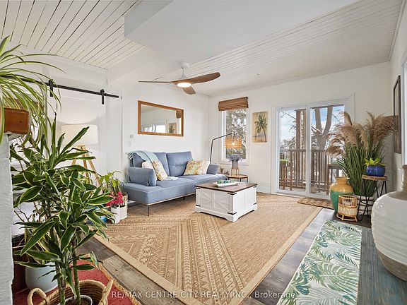 Treetop oasis in the quaint beach community of Port Stanley offers a unique destination appealing to those seeking a short-term getaway or family destination, merely steps from the beach & beautiful shores of Lake Erie. This high demand, income generating property with proven success & approximately 50K of annual revenue provides the best of BOTH worlds for those eager to acquire a vacation home while maintaining the opportunity to generate rental income when not occupied for yourself. WIN-WIN! With breathtaking, panoramic views of Main Beach to the South and Little Beach to the East, this property will captivate each visitor. A peaceful retreat, perched elevated amongst the trees, this is your chance to own your own piece of paradise! Bright oversized windows overlook a newly built deck where you'll experience the soundtrack of waves & spectacular water vistas. Plenty of seating in the dining area ensures a crowd can be hosted with ease. A functional kitchen includes fully updated finishes with chic new cabinetry, stylish new appliances, laundry & access to side yard. Generous living room includes three large patio sliders with gorgeous views of the lake & cozy wood burning fireplace. Primary bedroom includes multiple bright windows & private ensuite with free standing tub. Head upstairs to discover two additional bedrooms as well as updated 3PC shower. Significant renovations completed including updated Northstar windows, luxury vinyl plank flooring, drywall, paint, metal roof, deck & AC. Lower level is ready for your finishing touches, currently roughed in with electrical plumbing to complete a self-contained studio apartment or added living space. Deeded parking includes space for two vehicles as well as storage shed, just steps away on Sydenham St. A short walk brings you to the beach as well as many of Port Stanley's amazing restaurants & amenities. Truly a destination to appreciate with great appeal to enjoy as an income generating retreat!