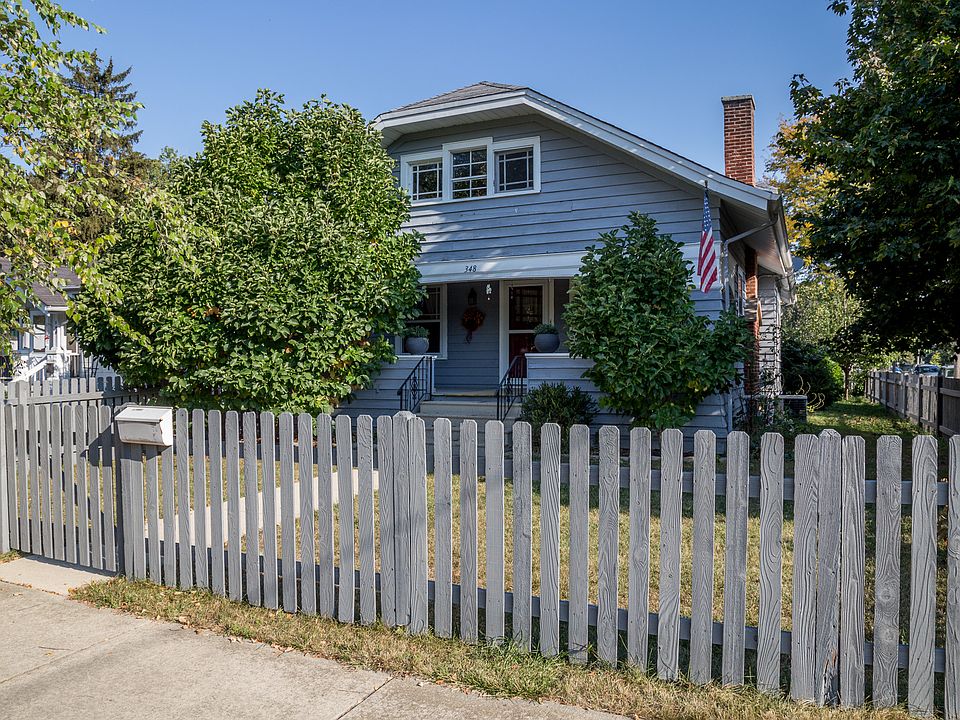 Classic bungalow with finished basement (add 890 feet living space) and fenced yard. Two car garage. High efficient furnace and water heater. Updated throughout. Large bedroom and storage room on upper level, two comfortable bedrooms and bath on main level, Spacious carpeted family room, large laundry room, work shop and "extra room" (9' x 11') on lower level. Cable on all levels. Security system. Matching kitchen appliances included. Fireplace w/ gas logs in living room. Large front porch. Patio in back. Wonderful, caring neighborhood. School, churches and public transportation nearby.