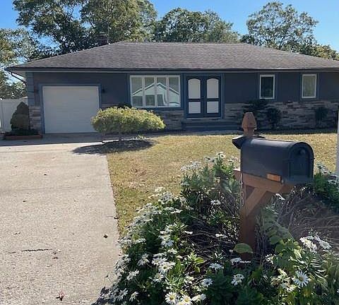 Discover this beautifully renovated 4-bedroom, 2-bathroom ranch, ideally positioned on a sought-after corner lot in Holbrook. Designed for comfort and effortless living, the home welcomes you with a bright, open-concept layout featuring vaulted ceilings, crown molding, recessed lighting, and skylights that flood the space with natural light.