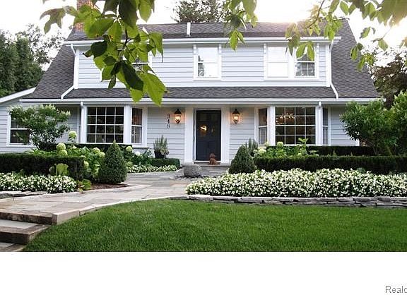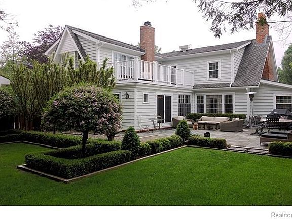 Beautifully designed with character and charm home, completely updated, premier street, short walk to downtown Birmingham. "Wallace Frost" built on Hawthorne Street, featured in Hour Detroit, quality throughout, hardwood floors, master suite with built in cabinets, fireplace, master bath with tub and shower, enjoy off master suite the deck overlooking professional landscaped garden and patio-formal living room with fireplace beautiful windows, custom drapes throughout - library with sitting area, dining room with bay window, four fireplaces, four bedrooms, finished basement rec room with craft room and laundry- family room crown moldings, built in cabinets, fireplace. Gourmet kitchen with gas stove, coffee bar, farm sink, marble counter tops, breakfast room over looks beautiful blue stone patio and gardens newly painted interior and exterior-peaceful-charm-beautiful home.