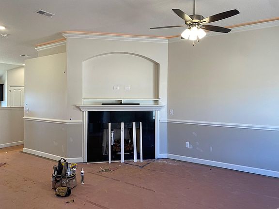 - Ceiling Fan(s), Tray Ceiling(s), Fireplace, Solid Surface Counters, Open Floorplan, Split Bedroom Plan