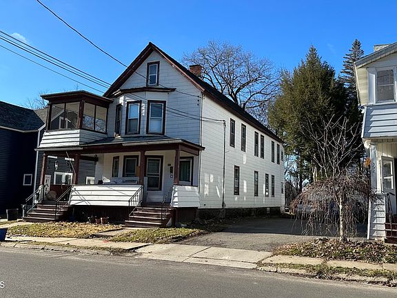 Prime location Amsterdam 3 family close to schools, restaurants and shopping. 1st FLOOR UNIT spans 1,310 sqft w/ 3 BR/1.5 BA, Large LR & DR; 2nd FLOOR UNIT w/ 2 BR/1BA; 3rd FLOOR UNIT w/ 1 BR/1BA. Good tenants in place below market rate. Total rents $2,500 cd grow to $3,100. Landlord pays heat but venting in place to add 2 HVAC systems for separate meters each unit. Aluminum siding, front and enclosed porches, natural gas. Driveway, garage. Live here for free and tenant pay freight or take it over for income generation.