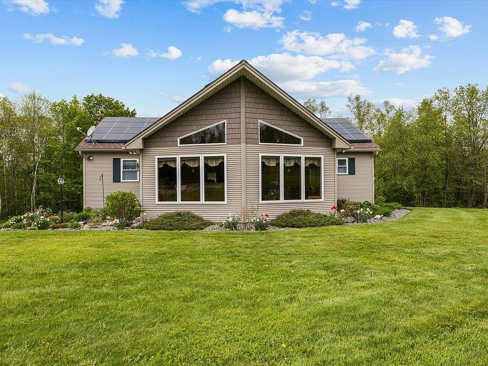 This beautifully maintained 3-bedroom, 2-bath home offers the perfect blend of comfort, efficiency, and versatility. Built in 2000, the home features a sunken living room with a gas fireplace and expansive windows that flood the space with natural light while showcasing serene views of the 1-acre pond. A four-season porch provides year-round enjoyment and a seamless connection to the outdoors. Thoughtfully designed for modern living, the home includes central air, central vacuum, a full alarm system, a Generac generator, and solar panels for energy efficiency and peace of mind. The kitchen is equipped with newer appliances, maple cabinetry, and granite countertops, complemented by maple and ceramic flooring throughout. Storage is abundant with two pantries, while tongue-and-groove cedar accents in the bathrooms and closets add warmth and character. The heated attached garage features a wash bay and central vacuum system, ideal for vehicle care and additional workspace. Outside, the property truly shines with a versatile barn offering a workshop and an apartment on the opposite end—perfect for guests, rental income, or multigenerational living. Outdoor amenities include a patio firepit, a fenced 68' x 55' vegetable garden, and an impressive selection of fruit-bearing plants and perennials, including apple trees, elderberries, currants, raspberries, blueberries, asparagus and rhubarb.