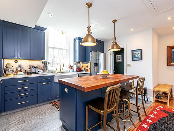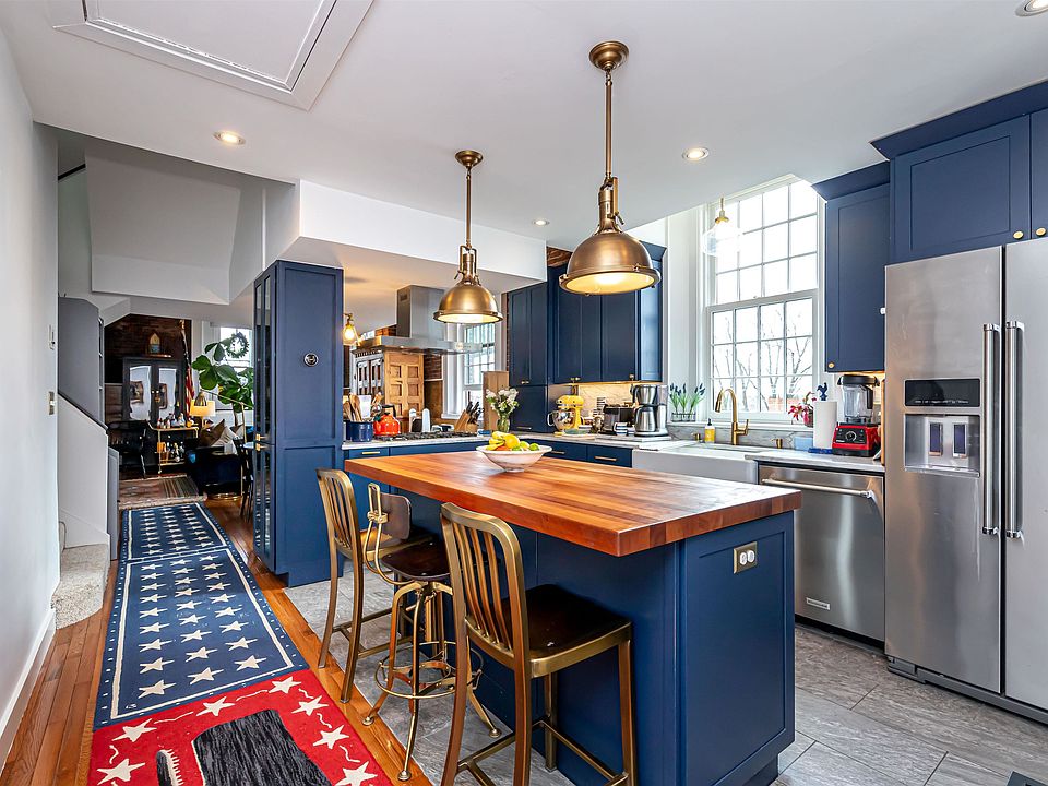 When you enter this quintessential Portsmouth condo in the Franklin Schoolhouse, you will know how special it would be to call it home. The kitchen offers state of the art stainless steel appliances, Carrara marble countertops and a cherry butcher block eat-in kitchen island. Pass through the open concept living and dining spaces featuring cathedral ceilings with exposed brick, original 1847 beams and new 12-over-12 windows. In colder months enjoy the warmth of a fire in the wood stove. Just off the living room you will find a roof deck with 180-degree views, including water views of North Mill Pond, the bridge to Maine and the delightful chimneys of Portsmouth’s historic homes. Enjoy your morning coffee in this lovely space, or relax here at the end of the day as you watch the sunset over the treetops from this unique vantage point. Upstairs, the full bath features a marble countertop, brass fixtures and smart washer and dryer. The primary bedroom incorporates original brick walls and custom built-in drawers, while the second bedroom maintains many of the same features as the primary - new energy efficient skylights, shiplap and original beams. The Association offers ease of ownership and peace of mind with pets allowed and dedicated parking spaces. Take advantage of this rare opportunity for a move-in ready property, a short walk from downtown, and enjoy the beautiful summer months ahead in Portsmouth. SHOWINGS BEGIN THURSDAY 4/18. OPEN HOUSE SATURDAY 4/20 10-2.