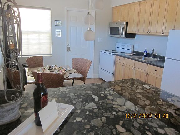 This single story building has a 2BR and 3 Studio Rental Suites, each with modern full baths and kitchens. Entire property and grounds have been completely renovated inside and out Jan 2013. Completely updated: new salt water pool, large travatine pool deck, all impact windows, individual private gardens & patios, (4) rear & (1) front assigned parking, privacy fence and security. All new HVAC's, plumbed gas and complete upgraded electric service (to code). All fully furnished and decorated