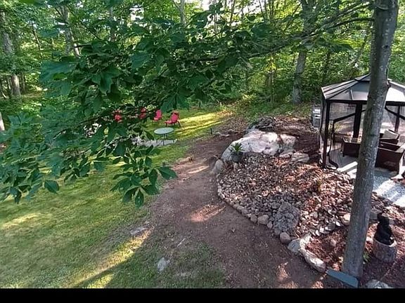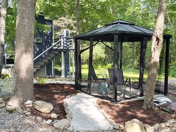 Sit outside and take in the view. The house sits privately and is surrounded by trees where nature abounds. It's a squirrels paradise. Grounds have 2 screened in gazebos, a firepit area and parking for several vehicles. There is also a 2 car garage.