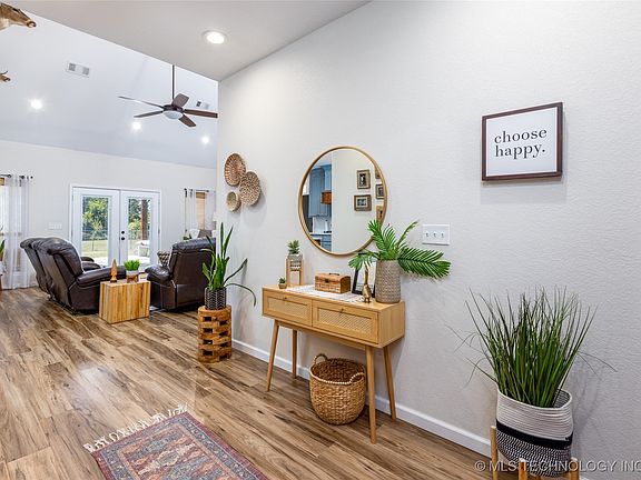 Discover this custom-built beauty: a 3-bedroom, 2.5-bath home with an upstairs bonus room, nestled on 5.56 acres. The farmhouse kitchen boasts vaulted ceilings, while the formal dining room features large windows offering scenic views. This home is very well insulated making it cost efficient on utilities. Enjoy the cozy farmhouse-style fireplace, and the open-concept kitchen and living room, complete with a double oven, gas stove, and a convenient waterspout above the stove. The spacious pantry, coffee bar, and drink nook add to the kitchen's charm. Large bedrooms come with walk-in closets, and the master bath features a walk-in shower and a classic clawfoot tub. The laundry room offers a view, making chores a pleasure. The bonus room is versatile, perfect as a media room, a fourth bedroom, or an office. The covered back porch provides views of deer and other wildlife. The property includes a cleared 5.56-acre land with a small pond and a large, fenced backyard. Enjoy having your ATVs, fishing, and only 6 minutes from the lake with hiking trails. Located a short distance from Choctaw Casino, 15 miles from the Texas state line, and within a 2-hour drive of Dallas and 2.5 hours from the OKC metroplex. Shopping, medical facilities, entertainment, and restaurants are all within a 13-mile radius.
