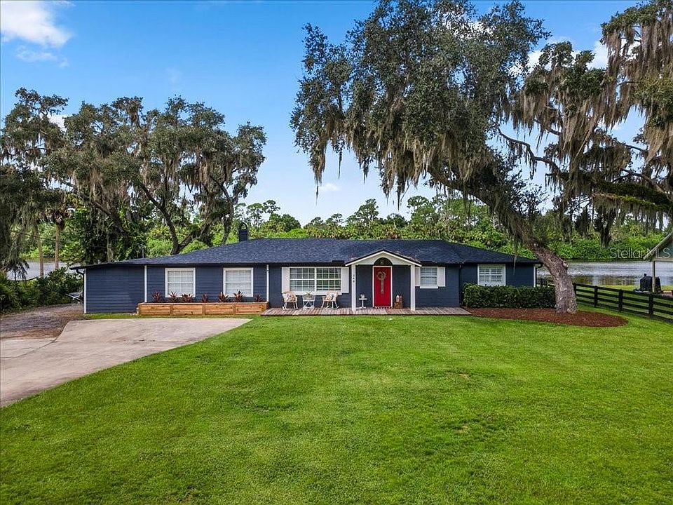 Completely remodeled lake front home in Geneva on 0.66 acres of land on Lake Beatrice. MOTIVATED SELLER. Enjoy sunsets looking west from your back porch – an awesome view that you will never tire of! 4 bedrooms and 3 full bathrooms with 2,234 heated square feet! 2683 total square feet. New kitchen (2023) with white shaker cabinets with bronze hardware, new granite counter tops, stainless steel appliances. New primary bathroom, that also was totally renovated with a large walk-in shower with subway tile & penny tile shower floor; and new vanity with white quartz counter top. New 2023 roof and 2023 repipe. HVAC system and all ductwork, also new in 2023 + new attic insulation. Additional 2023 total remodel includes new interior doors, exterior paint, interior paint, luxury vinyl flooring (except bedrooms 2 & 3 and utility room which have laminate & 3rd full bathroom has tile flooring), 51/3” baseboards, new lighting including recessed lighting in kitchen & hallways. Full bathroom #2 and full bathroom #3 have been updated including new vanities. Back deck remodeled and above ground pool in 2024 & new front deck was added in 2025. The west facing covered back porch is 35’ x 14’. Large shed in back with electricity is included in the sale. Chain length fenced back yard, which does not block the view, but keeps the dog inside the backyard. Floor plan has the primary bedroom with ensuite full bath, and the 4th bedroom also has an ensuite full bathroom + there is a dedicated inside laundry room and a dedicated inside utility room + the large family room that opens to the kitchen; off the kitchen is a dinette-multi-purpose room. Seller has added lighting on the house, which works off a phone app, and displays colors that match holiday seasons. Top rated local Seminole County public schools. Easy drive to Oviedo or to Sanford or to Brevard County & I-95. This is a perfect home for someone who wants peace and quiet, no HOA, room to park vehicles, and a “backyard” almost private small lake to fish in. Homes on land like this one do not often come up for sale in east Seminole County. The new owner can move right in. Recent 4 Point Home Inspection ( September 2025 ) is available along with a detailed Feature Sheet. Act now to see this home and call today to set up an appointment.