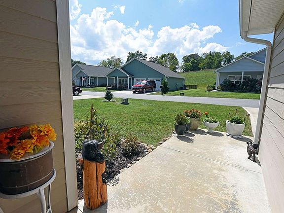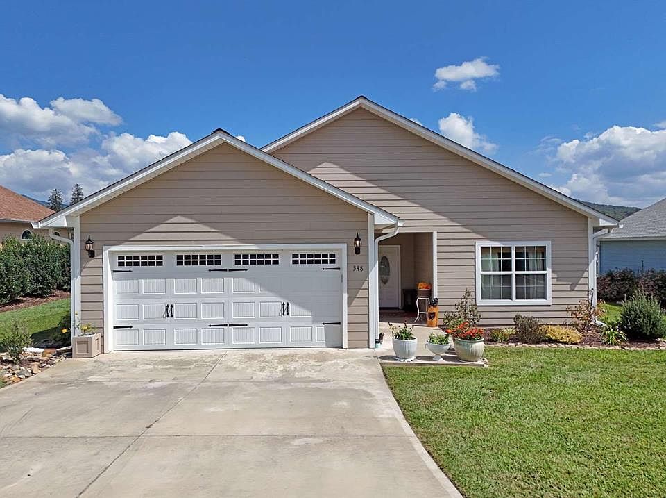 Located within walking distance of downtown Hayesville, NC and 5 minutes from grocery, drug and retail stores, this well-maintained 3/2, one level with 2 car garage is the perfect home for you! Quiet, gated community with easy paved access to schools, library, post office, Clay County recreation center and walking trails. The Property Owners Association (POA) does lawn maintenance, weekly trash service and road upkeep. Step inside to an open layout with 9 ft. ceilings, vinyl plank flooring throughout home, ceiling fans, upgraded lighting with dimmer switches (inside and outside), lever handles on doors, cordless blinds on windows and dual fuel heat pump. Garage and attic are insulated for extra A/C efficiency and attic has retracting stair to access stand-up storage space. Extra large kitchen with plenty of cabinet space including 3 Lazy Susan pie shelves in corners and pull out wooden drawers in pantry cabinet featuring soft close doors throughout and gas range. Inside laundry room