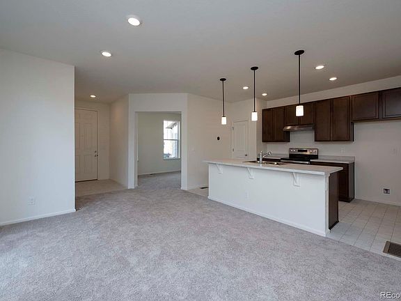 This incredible two-story home features an open floor plan with 9-ft. first-floor ceilings and a main-level den that's an ideal space for an in-home office, formal dining room or yoga studio. Making breakfast will be a breeze thanks to an oversized island in the kitchen, which also showcases Timberlake® 42-in. upper cabinets and Whirlpool® stainless steel appliances. Upstairs, a loft provides the perfect space for a study area or game room, while a laundry room offers maximum convenience. The spacious primary suite boasts a walk-in closet and connecting bath that has a dual-sink vanity and walk-in shower. Other distinguishing features include Sherwin-Williams® low-VOC interior paint, 8-ft. front and sliding glass doors, smart thermostat and an unfinished basement. Additionally, this home comes with a private side-yard and an attached 2-car garage. You can't beat the mountain/park views from your front porch! Available now! Team Lassen represents the seller/builder as a Transaction Broker.