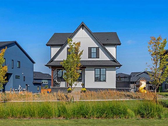 Located in the sought-after, award-winning community of Harmony, this newly built farmhouse-inspired modern design is sure to impress. With over 2,300 sq. ft. of thoughtfully designed living space and more than $40,000 in upgrades, this Broadview-built home is the perfect family retreat, complete with a double detached garage and plenty of storage options throughout. Move-in ready with thoughtfully selected upgraded finishes, it’s designed for both comfort and style. The main floor, with abundant natural light and large windows, features an open-concept living and dining area, a modern chef’s kitchen with quartz countertops, beautiful backsplash and stainless steel appliances, a private office, and a stylish powder room. Step outside to your dream oasis, a full-length deck with a custom built pergola, privacy walls, BBQ area, lounge space, outdoor lighting and newly hot tub—perfect for entertaining or relaxing evenings. Upstairs, a modern bonus room provides an exceptional space for relaxing, alongside two bedrooms with closet organizers, a 5-piece bathroom, and a laundry room with plenty of additional storage. The primary suite is spacious and bright with large windows, featuring a spa-inspired 5-piece ensuite with beautiful tile, a modern freestanding tub, and a large walk-in closet. The basement remains undeveloped, ready for your personal touch. Additional highlights include gemstone lighting, air conditioning, water softener, premium flooring, custom built-ins, upgraded staircase railings, and upgraded lighting and tile throughout. The yard is an open canvas awaiting your green thumb—perfect for creating your own outdoor oasis. Combined with striking curb appeal, a functional family-friendly layout, and Harmony’s exceptional amenities—including scenic lakes, pathways, golf course, and welcoming community spirit—this farmhouse-inspired home truly has it all. Conveniently located across from the school bus stop, it’s an ideal family home.