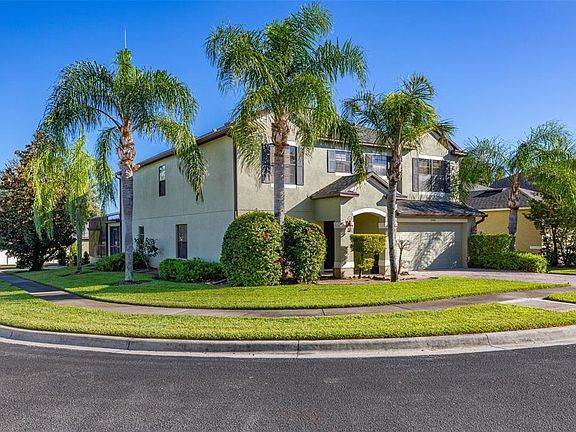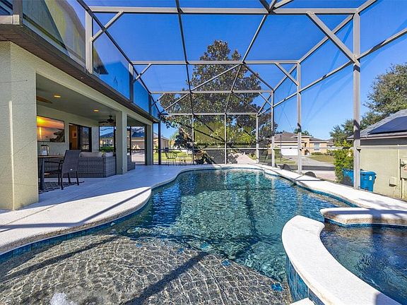 One or more photo(s) has been virtually staged. Welcome to this one-of-a-kind 5-bedroom, 3.5-bath home in the desirable Park Ridge community of Davenport, FL — the only home in the neighborhood of 66 that boasts its very own private pool! The sparkling heated saltwater pool with spa is complemented by a double-extended covered patio, complete with cooling fans and a big-screen TV — the perfect outdoor retreat for entertaining or relaxing year-round. Situated on a large corner lot adorned with beautiful magnolia and palm trees, this home exudes curb appeal and Florida charm from every angle. Step inside to find elegant touches throughout, including stunning light fixtures and electric fireplaces in both the dining and great rooms. The extended front formal dining room offers extra seating space and a beautiful piano for added sophistication. The kitchen is a chef’s dream with a gigantic island, plenty of cabinetry, and easy-care tile flooring that flows into the family room and bathrooms, while plush carpeting enhances comfort in all bedrooms and living areas. The spacious primary suite is conveniently located downstairs, while upstairs you’ll find four spacious bedrooms (three with walk-in closets), a HUGE bonus room, plus an office, and a laundry area for added convenience. Every detail of this home blends functionality and style — a true gem in Park Ridge! Upgrades include new roof (2025), AC (2021), water purification system (2021) and hot water heater (2024) This community is conveniently located to Disney, Posner Park shopping mall, hospitals & more! Plus, easy access to Orlando & Tampa via I-4, Haines City & Clermont via US-27. Don't miss out on this exceptional opportunity for your primary residence or investment property (long-term rentals allowed). Schedule your private showing today.