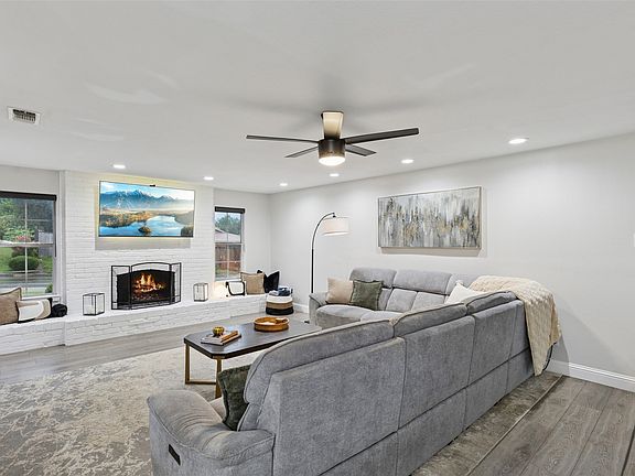 Wood-burning fireplaceUpgraded modern light fixturesSmoker and grillNew wood blindsOutdoor string lightingProfessionally landscaped flowerbedsCovered patio
