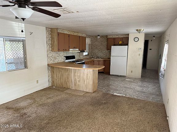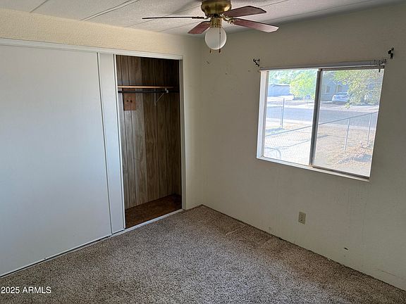 Great opportunity in Coolidge! This 2-bedroom, 1-bath manufactured home (1981) offers excellent value with a fenced yard, mature shade trees, covered parking, and no HOA—enjoy the flexibility to personalize and make it truly yours! The split floor plan offers privacy, with bedrooms located on opposite ends of the home.
