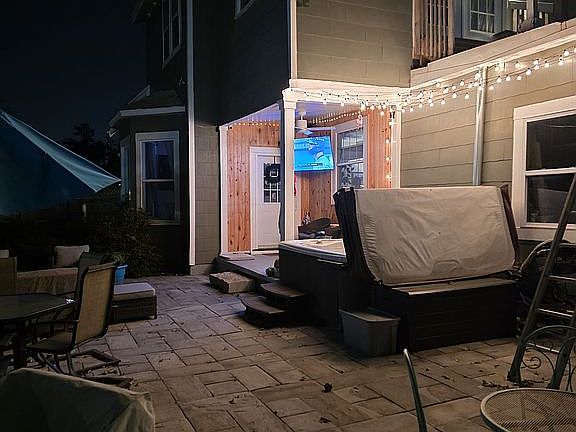 Vaulted ceilingPowered gateHuge patioWalk-out patioHot tubAbundance of natural lightCorner lot