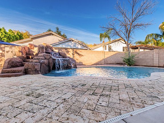 Inside, you'll find 3 spacious bedrooms plus an extended primary suite retreat , which is ideal for a home office, den, nursery, or flexible bonus space. The home also features 2 full bathrooms and a high-quality newer Trane AC unit for dependable comfort. The backyard is a true highlight, featuring a stunning PebbleTec Shasta pool with a waterfall grotto and rock slide, all controlled by a convenient smart tech pool system. The extended covered patio has been recently refreshed, and the low-maintenance turf and rock landscaping make the space perfect for relaxing or entertaining.