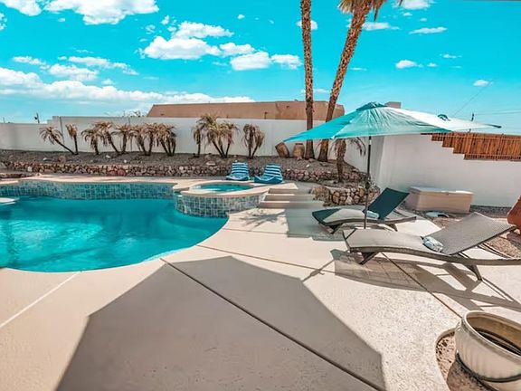 Completely renovated and tastefully designed, you'll feel like you're at a model home on a private resort. No detail was missed in our sprawling home just 10 minutes to the London Bridge. As impressive as the inside is, the outside is just as amazing with a large pool, attached spa and outdoor dining for the dinners al fresca after a day on the lake. We love even just spending the day by the pool and nights in the jacuzzi catching up with friends. We hope you enjoy our home as much as we do!