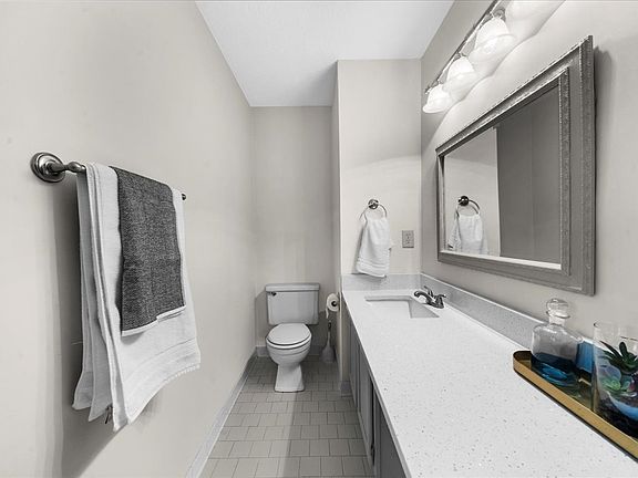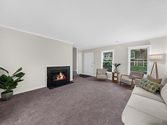 This townhouse features 2 bedrooms and 2.5 bathrooms. The interior is freshly painted, with new carpets throughout, and filled with gorgeous natural light. The kitchen is beautifully updated with all new quartz countertops and stainless steel appliances. The first floor offers a spacious open floor plan for the kitchen, dining, and living room, complete with a fireplace and tiled flooring in the kitchen and dining areas. Upstairs, each of the two bedrooms has its own en-suite bathroom. The outside area includes a tree-lined walking path and a gazebo. There is covered parking available for two cars.