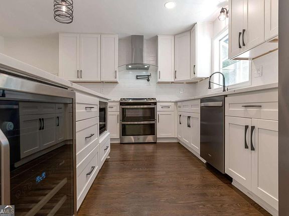 Renovated top to bottom in 2022 including new windows throughout the house, this 5-bedroom, 3.5-bath beauty sits proudly on a corner, nearly half-acre lot in beloved Hampton Hall. The open main level features brand-new hardwoods, a chef's kitchen with quartz countertops, a generous island with wine cooler, and effortless flow to the dining area and new deck. Brand new chic powder room, cute mudroom area, and two-car garage on the kitchen level with additional storage make everyday life easy. Upstairs, the primary suite, with a fully renovated bathroom, two more bedrooms and a new hall bath complete the floor. Downstairs, the walkout level adds flexibility - spacious family room with a cozy fireplace, two more bedrooms, and a stylish full bath, perfect for guests or in-laws. Enjoy low-maintenance living with hard-surface floors and a private backyard. Optional Hampton Hall Swim/Tennis, nearby parks, and unbeatable access to top schools and Brookhaven Village.