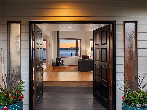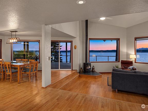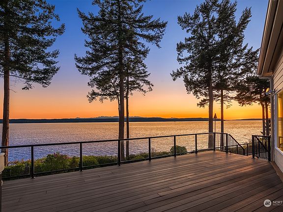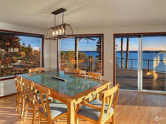Come experience this southwest-facing contemporary home designed around a dynamic panorama outside every window. The ever-evolving view reflects all facets of Pacific NW beauty with snow-capped mountains, the ebb and flow of water, captivating sunsets & migrating wildlife. The home's open-concept kitchen, living & dining areas connect to a full-length deck complete w/ hot tub. Upstairs is the primary bedroom w/ walk-in closet, ensuite bath & private deck. A large loft area spans to a ¾ bath & two additional bedrooms (w/ Mt. Rainier view). Minutes to the community's private waterfront, where beachcombing, whale watching & crabbing await. Other notable features: 935 sq ft garage w/ bonus room, propane stove, newer heat pump, siding & windows.