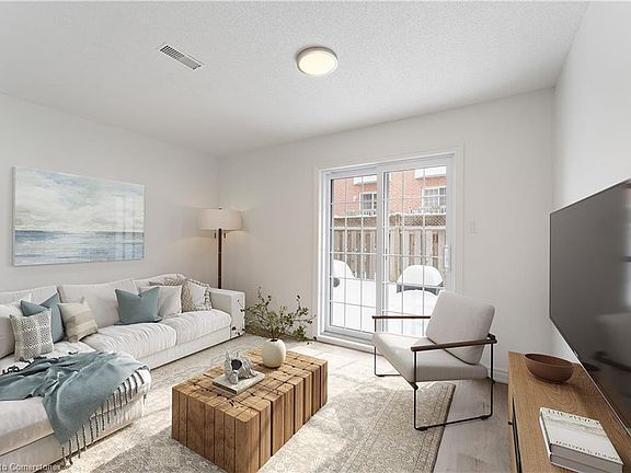 Absolutely stunning townhome. Quick possession available. White walls, gray stained white oak flooring. Extensively renovated on all three levels in 2024 & 2025. The home was the subject of smoke damage originating from a fire in the garage in 2024 & was professionally restored through insurance. Windows, doors, garage door, drywall, garage door opener, electrical outlets, flooring, lighting, thermostat, appliances, tiling, stair carpeting, railings, pickets and trim were replaced. Painted neutral white. The interior entry stairs were replaced & clad in stained oak; the other 2 staircases were re-faced & re-carpeted. The furnace, electrical panel, water heater, plumbing fixtures and cabinetry were replaced. The garage is on grade level with entry to a family room/office & bathroom with shower. Neutral laminate flooring on this level w/ walk-out to a fully fenced patio. Front entry to a tiled foyer, oak staircase, coat closet & open concept eat-in kitchen/ living room. Stained oak railings, newel posts, white pickets. Added pot lighting. Kitchen features white Shaker cabinetry (one glass fronted), bay window w/California shutters. White quartz countertop, stainless sink. A breakfast bar separates the kitchen & living room. Sliding glass doors which lead to a balcony. Two bedrooms & a full bathroom w/stacked laundry in closet. Primary bedroom has 2 closets. California shutters in both bedrooms. Sq footage calculated using Matterport. Stainless appliances: GE fridge, stove/cooktop, dishwasher & white stacked washer/dryer. Whirlpool stainless combination microwave/fan unit. All were recently installed. Kohler: toilets & mirrored medicine cabinets. Central vacuum on 3 levels (unit in garage). Room sizes are irregular. Please review floor plans for specific measurements. Status Certificate dated February 7th, 2025 available. Disclosure for details regarding fire and smoke damage available. Use HDSB, HCDSB ‘find your school’ tool for English, French grade options