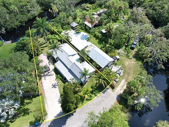 Your private oasis on Goat Creek! 4-bedrm, 2-bath home offers the perfect blend of comfort, functionality, & laid-back Florida living. Bring your jon boat & fishing gear! Inside, you'll find a well-maintained interior featuring a mix of tile, fresh laminate flooring, & brand-new carpet. The home is freshly painted & move-in ready, with modern updates including a newer A/C unit, water heater, & impact windows. Step outside to your tropical paradise! Mature mango & coconut trees offer shade, fruit, & that unmistakable Florida charm. No HOA restrictions here, bring your RV/boat. rmszappr&sub2err