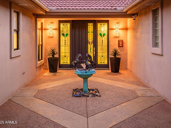 Awesome sunsets & mountain views await you in this meticulously updated move-in ready home that perfectly balances luxury and comfort featuring NO INTERIOR STEPS, natural light pouring in & beautifully stained concrete floors throughout (no carpets). Owned solar system powers your entire home including a climate-controlled 3-car garage. Year-round comfort without worries of utility costs. An impressive 550-sqft master closet + generous walk-ins in every hallway let you say goodbye to costly off-site storage fees. Your private backyard sanctuary offers complete seclusion with panoramic sunset views, majestic mountain vistas, and twinkling city lights, creating a perfect backdrop for entertaining or quiet reflection. This beauty delivers luxury living at an exceptional price/sqft.