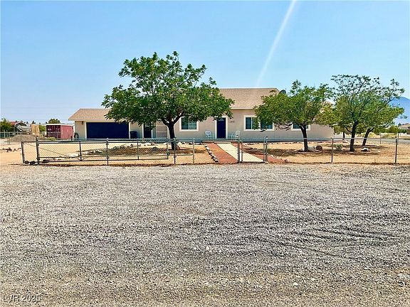 Welcome Home! This spacious, beautifully updated home nestled on nearly 1 acre is in the heart of Pahrump. Step into the living & dining rms, both featuring wood floors, creating a warm & stylish feeling. The kitchen has been updated w/new stainless steel applns - fridge, stove, microwave, dishwasher, & kitchen sink. It's move-in ready! The interior & exterior has been freshly painted, providing a crisp, clean canvas for you. With 4 generously size bdrms and 3 full baths (including two private owner's suites with en suite baths) & 2,624 s/f this one is perfect for multi-gen living, guests, or those who crave space & flexibility. Originally built in 1995 w/a thoughtfully designed addition completed in 2003, the layout provides a seamless blend of charm & modern convenience.Upstairs, is a den w/built-in desk, perfect for office, studying, or creative space. $5,000 flooring allowance is included. Endless Possibilities! Here's your chance to own this rare gem. Just minutes from town.
