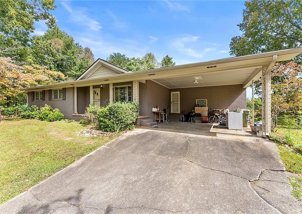 Four-sided brick ranch on 1.57-acre corner lot with fenced backyard. This 3BR/2.5BA home offers approx. 1,800± sq. ft. featuring a vaulted kitchen and dining area with granite countertops, custom cabinetry, double oven, microwave vent hood, smooth cooktop, large breakfast bar, and can lighting. Spacious family room with hardwood floors, tile in kitchen/dining/laundry, and plenty of closet space. Primary suite with stand-up shower; guest bath with garden tub. Rocking chair front porch, back deck, and 2-car carport. Well water with city water available. Convenient to Lake Lanier Olympic Rowing Venue.