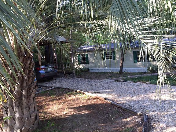 This is affordable waterfront living in the gated subdivision of Leisure Lakes. It has three bedrooms, two bathrooms with a split bedroom plan. The kitchen has a breakfast bar with plenty of cabinets, separate dining area, and a covered and screened deck off of the living room with a nice view of the lake and pier. There are plenty of trees and a few palm trees providing shade over the home. There is a storage building that also has a covered parking space. Also available to all residents of Leisure Lakes is a swimming pool, pavilion, boat launch, basketball court, tennis court, toddler playground and more. The security gated community has live guards during weekdays, and each resident has a private code to enter. More photos coming tomorrow.