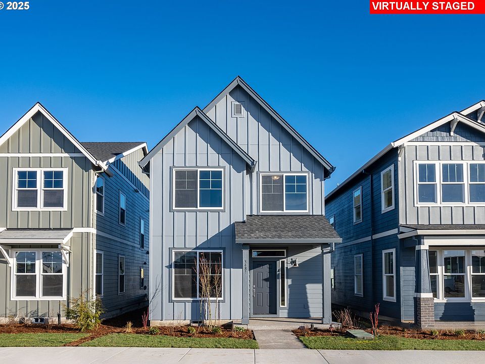Very open and light first floor offering a great room concept with a beautiful island kitchen and a pantry to boot. Second floor offers a split design with a large primary suite, Separate walk-in closet from bath, double sinks and walk-in shower. Large laundry on second level for convenience. Home includes, A/C, refrigerator, Washer/Dryer set, and blinds installed. Renderings and sample photos are artist conceptions only. Photos are of similar or model home so features and finishes will vary. Reed's Crossing features over 80 acres of open spaces including parks connected by modal paths, dog parks, fire pits to lounge around, community gardens, and so much more. The new shopping center with grocery and retail is expected to open in 2025. Below-market rate incentives available when financing with preferred lender! Homesite # 1532, this home is Move-in-Ready. [Home Energy Score = 10. HES Report at https://rpt.greenbuildingregistry.com/hes/OR10234486]