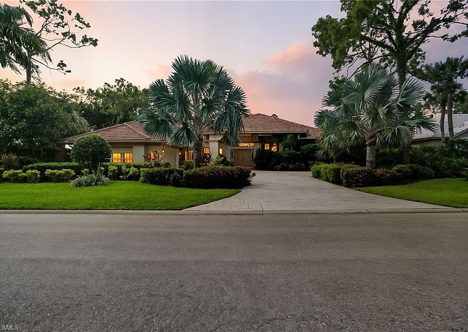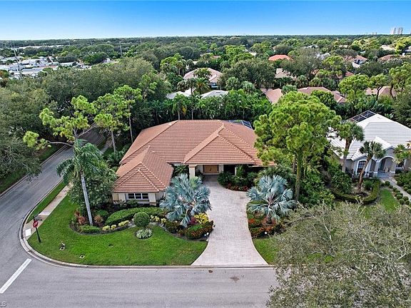 Welcome to this beautifully located single-family home tucked away on the corner of a quiet, peaceful street in the sought-after community of Pelican Landing. This three-bedroom, 2.5-bath residence offers a balance of comfort, style and privacy, surrounded by lush tropical landscaping. Go inside to discover an inviting open floor plan with abundant natural light, volume ceilings, and extra space to make this property your own. The kitchen features a large center island, granite countertops, built in wine bar and cooler, recessed lighting, walk-in pantry and views overlooking your serene private lanai—ideal for everyday living and entertaining. The spacious living and dining areas open seamlessly to a large, screened lanai, creating effortless indoor-outdoor flow ideal for relaxing or dining alfresco. The primary suite serves as a peaceful retreat with private lanai access, a walk-in closet, and a spa-inspired en-suite bath offering dual sinks, a soaking tub and a separate walk-in shower. Two comfortable guest bedrooms and a full guest bath provide ample space for visitors. Enjoy tranquil mornings and evenings from the large, south-facing screened lanai featuring a generous covered area, new ceilings fans, outdoor grill and a convenient pool bath. Additional highlights include a newer 2018 roof, updated HVAC, newly painted interior, a spacious two-car garage, and manicured landscaping that enhances the curb appeal. Residents of Pelican Landing enjoy an unmatched lifestyle with access to a private beach park on Big Hickory Island, a full-service marina, numerous tennis and pickleball courts, bocce, kayaking, a state of the art fitness center, and miles of scenic walking and biking trails—all within minutes of world-class dining and shopping. Experience a blend of elegance and Florida living here.