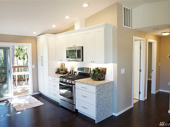 Not a flip! Intr Designr owned, full remodel. 4 Br 2 Bth split w/open concept flr plan, vltd ceilings, wide galley kit, wood brn FP plumbed for G, tankless w htr for endless hot w, drawer dishwashers, upgraded disposal, custom master closet & views onto a wooded lot w/easy BPA trail access. NEW- Roof, Lg front&rear decks, G-furn, cased vinyl windows, dark walnut hd wd flrs on main level, G-Rng, microwave, granite waterfall countertops, Wht cabinets, custom millwork, Nest thermostat & more. WOW!!