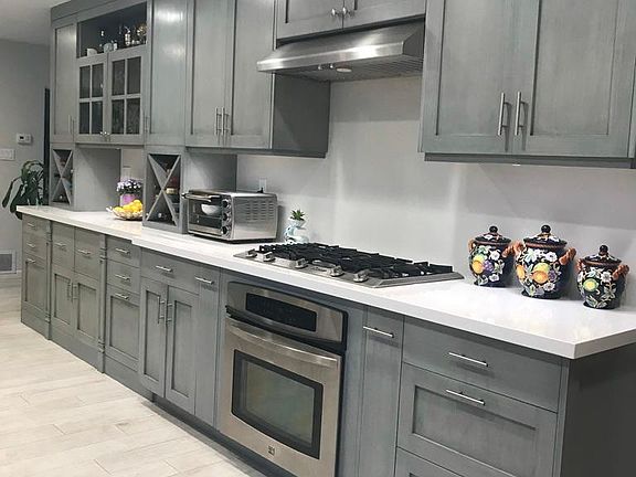 Kitchen has Italian Quartz counter top equipped with all stainless steel appliances marble top vanitie bath room.