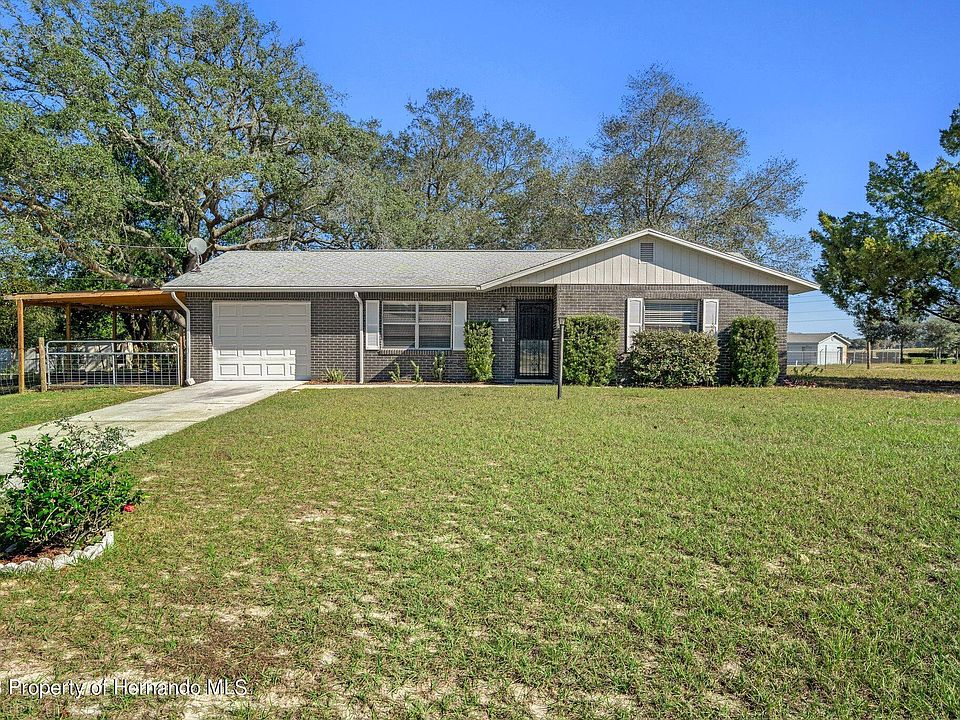 This well-maintained, 3 bedroom/1.5 bathroom home in the heart of Dade City, FL offers all of the amenities you need for a cozy and comfortable space! MOVE-IN READY is situated on a spacious, 0.40 acre corner lot just off of US-301 and US-98 S/Cortez Blvd and would be the ideal starter, investment, or retirement property. Home boasts an updated kitchen with glass tile backsplash, stainless steel appliances, and ample cabinet space. Soak up the Florida sun and take in picturesque, morning sunrises from the 10' x 16' Florida room towards the back of the home or from the large fenced backyard with stunning, mature trees, providing shade and serenity. Washer/dryer hookups can be found in the 1-car garage and home has an additional, 1-car carport along with oversized concrete RV pad, offering plenty of space to park your boat, camper, trailers, and toys (with NO HOA restrictions)!