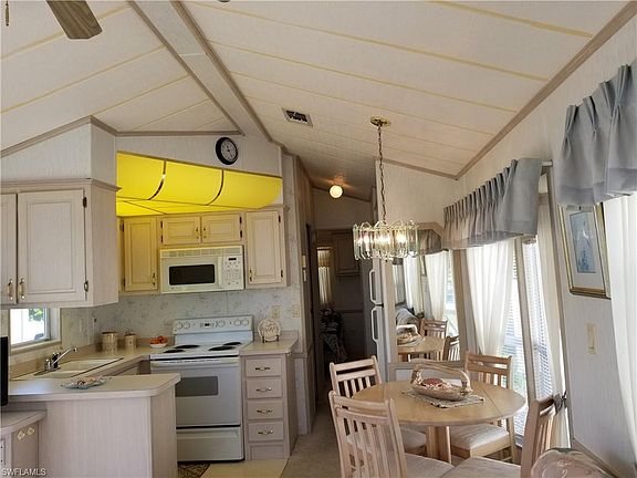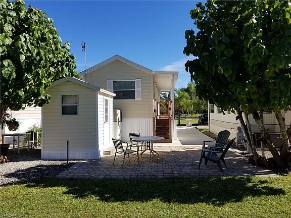 Exceptional location across from the lake, open landscape area of manicured grass and palms trees swaying in the breeze. The homes in this area of the park are seldom offered for sale. This 1997 Park Model Manufactured home is one of a kind. Enjoy the tropical view from the living room, dining room and kitchen! One bedroom and one bath, built in storage, vaulted ceilings add spaciousness to the home. Biking distance of 4.2 miles to the closest beach. Fantastic location just 12 minutes to Bonita Beach and 13 minutes to Barefoot Beach, waterfront restaurants and shopping along the way. Turnkey ready for immediate occupancy with many amenities of the Park which includes pool with water aerobics, shuffleboard, library, exercise equipment, billiards, picnic tables, community workshop, clubhouse with planned activities and friendly people. Or leave the car at home and catch the Beach Trolley to Fort Myers Beach and explore Estero Island at Times Square, The Mound House, Mantazas Pass Preserve, Bowditch Point Park, Lovers Key State Park and so much more! Do not miss the opportunity to live the Florida Lifestyle at such an affordable price! Call for an appointment today!