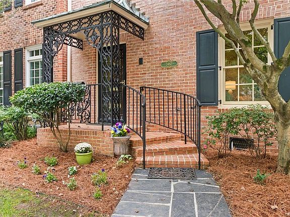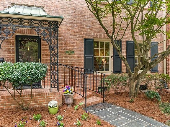 This stunning townhome is full of elegance and charm with tons of natural light. The gorgeous 2-story entry foyer with beautiful curved staircase and wall greets you and welcomes you home. To the right of the entry is the formal dining room currently being used as a living room/den with classic moldings/paneling, a wall of built-in bookshelves as well as a built-in credenza perfect for display and storage. The open family room offers a fireplace and all glass french doors along the rear wall, that look out to your private brick and stone courtyard. The family room is also open to the dining area with additional set of glass french doors. Beautiful kitchen with marble countertops and full slab backsplash, custom cabinetry, high end stainless steel appliances, gas cooktop, warming drawer, wall oven and microwave. This kitchen offers so much storage with deep drawers and also offers pull outs in cabinets. There is a large walk-in pantry as well as a butler's pantry/dry bar. There is also a pretty half bath on the main level. Upstairs offers an oversized primary suite with 2nd fireplace flanked by custom built-ins, double set of glass french doors that open to covered large balcony overlooking the beautiful private courtyard. There is a small designated office area in the primary suite with a nice custom built-in desk. The primary closet is huge and offers lots of storage. The laundry is located in a closet in the primary suite. The renovated primary bathroom offers a beautiful marble walk-in shower, marble floors and vanity. The 2nd bedroom upstairs is large with nice sized closet. The renovated bathroom for the 2nd bedroom offers a walk-in shower and gorgeous vanity and is accessed from the hall right next to the bedroom. Awesome stone and brick courtyard is large and oh so charming offering plenty of planting area to create whatever feel/look you'd like. Perfect for relaxing, entertaining etc. The original 2 car garage has been converted into finished space with custom built-in bookshelves, renovated marble full bathroom with walk-in shower and heated floors. This space is currently being used as an office but in the recent past was also used as a guest suite. There are two large storage closets in this space. This space can be used for so many different things. If buyer preferred to convert back to a garage they could. This townhome offers tall ceilings, beautiful moldings and elegant architectural accents you just don't see anymore. Real oak hardwood floors throughout main level as well as the upstairs. New heat pump system May 2024, one water heater is brand new and the other water heater is 1 year old. Fresh paint, open and bright. Incredible location, gated and right off Paces Ferry exit off 75, minutes to OK Cafe, Houstons, so many other awesome restaurants and shopping. This is truly such a special and charming smaller community of 39 townhomes that feels more like a neighborhood where you get to know your neighbors. Sq footage does not include the detached guest suite with full bathroom. That space is approx 450-500'. ***per HOA management, the monthly dues will be reducing by a couple hundred dollars in November*** There is a community pool and dog park.