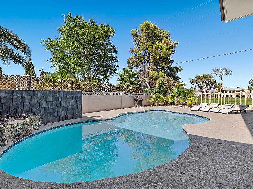 Luxury Golf Course Rental with Pool in Paradise Palms! Beautifully updated and fully furnished, this 4-bedroom + office/game room, 4-bathroom home sits on 100 feet of frontage overlooking the 13th fairway of Las Vegas National Golf Course! The chef's kitchen features a waterfall island, quartz countertops, premium stainless appliances, and abundant cabinetry, opening to spacious living areas ideal for entertaining. A versatile room offers space for an office, den, or game room with direct pool access. The primary suite includes a spa-inspired bath with soaking tub, dual vanities, and walk-in shower. Outside, enjoy a sparkling pool, private patio, and unobstructed golf course views. Rich Vegas history this neighborhood was featured in the movie Casino and this particular home enjoyed occupants like Bucky St. Angelo (portrayed in Casino), legendary singer Dionne Warwick, and comedian Foster Brooks. Minutes from the World Famous Strip!