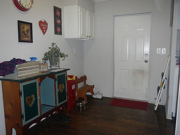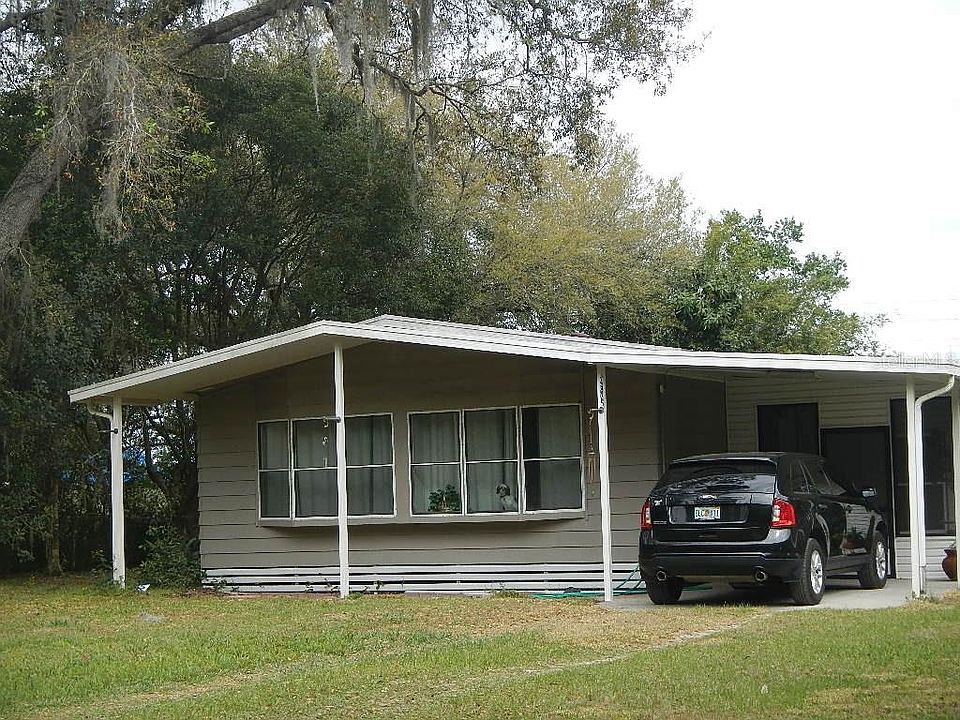 No fees. No HOA. No CDD. Property on a dead end road so there is very little traffic. Lot size is on .29 of a acre so not too much yard to take care of but still enough yard to enjoy the outdoors. 1 car carport, screened/covered porch with 2 additional areas attached that could be used for laundry or workshop area. Step inside the home to a small entry area that could be used for a nook area. Kitchen has plenty of cabinets which leads to the dining area with built in display cabinets. Large living room . The bay windows that stretches across the front of the home allowing the sun to shine into the dining and livingroom. From the hallway you have 2 bedrooms, both with walk in closets, the master bath with shower. Guest bath has a tub.