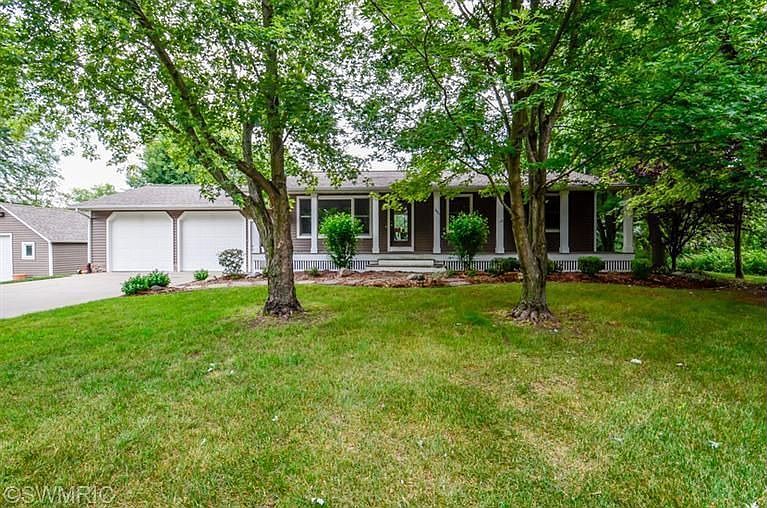 2 bedroom, 2 bath home in the country on 1 acre with all the extras. Home is on a wooded lot with a creek for it's one boundary. Backyard has a large deck w/outdoor kitchen & fire pit for evening entertainment. Main floor has a master suite with a walk in shower & walk in closet. Updated tiled kitchen and large dining room opens to living room with hardwood floors. Kitchen area has stainless steel appliances and large pantry. Lower level family room has large theater area with a Bower & Wilkins speaker system that you will not want to miss. Family room also includes a wet bar. Lower level features a large office or den area with built in desk and many storage cabinets. The home has attached 2 stall heated garage and property also has a stall and a half detached heated garage. Both have epoxy painted floors to keep your toys clean. Home is in Hamilton School district, but other side of the street is Saugatuck if you want to use school of choice. Front of home has a large covered porch
