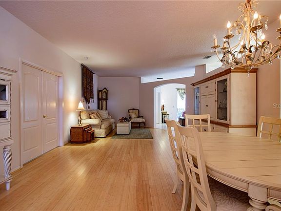 55+ Kings Ridge Community located on 2 golf courses Championship and Executive in Central Florida. This Popular Unique St. Regis model is located on a corner lot with view of golf course. This home features 2 bedrooms an den/office that can be used for 3rd bedroom. Beautiful Bamboo wood floors in dining room, living room, master bedroom and den. The eat in kitchen features upgraded corian, new ref and light fixtures. The family room is open to the kitchen with a view of large screen lanai. Great room/dining room / living room combo is great for entertaining. Bar-Q on the large screen lanai that has view of the 5th T of Executive golf course. This 2 car garage PLUS a GOLF CART parking garage. HOA;S include lawn maintenance,home phone, basic cable, internet service paint your house every 6 years. escrow reserves,. A 24 guard gate. use of the multi million $ clubhouse. Something to do day and night. Travel club, library, computer classes, clubs to join. card games, host plays, dances, bingo, movie night, 3 pools, 2 spas, fitness ctrs. & fitness classes. Tennis and pickle ball courts. Hop on your golf cart ride to the shopping ctr. grocery store, restaurants, banks, restaurants, pet store, hair salon, dr office. etc.. Take a day trip to the attractions Disney, Universal, Sea World or the beaches Less than an hour drive to Orlando airport. Come Live The GOOD LIFE IN CENTRAL FLORIDA.