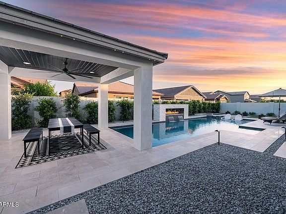 Located in the prestigious Lakeview Trails SW at Morrison Ranch, you'll love the tree-lined streets, pickleball and tennis courts, and proximity to top-rated schools, SanTan Mall (restaurants & shopping), Revel Surfpark, and major highways. Plus, furniture is available on a separate bill of sale. Make this dream home yours